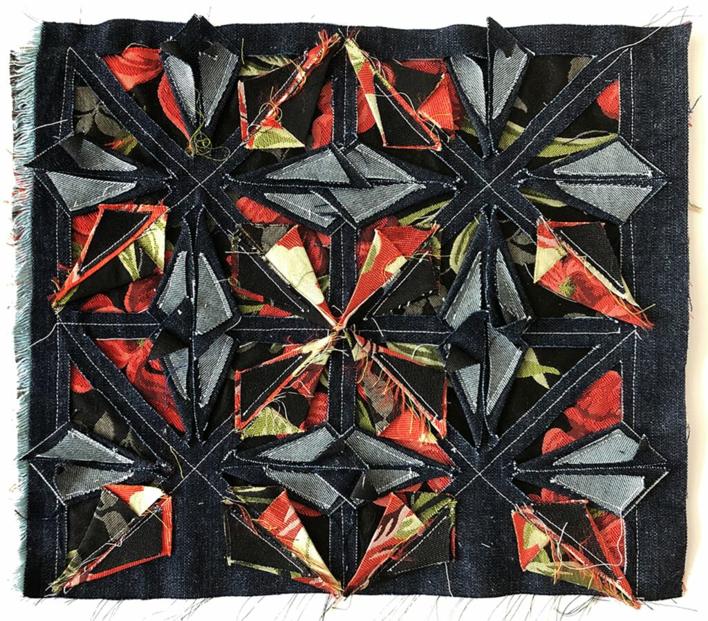 Propozycja kolekcji tkanin odnosząca się do tematu "odkrywcze odsłonięcie". Techniki manipulacji tkaninowej