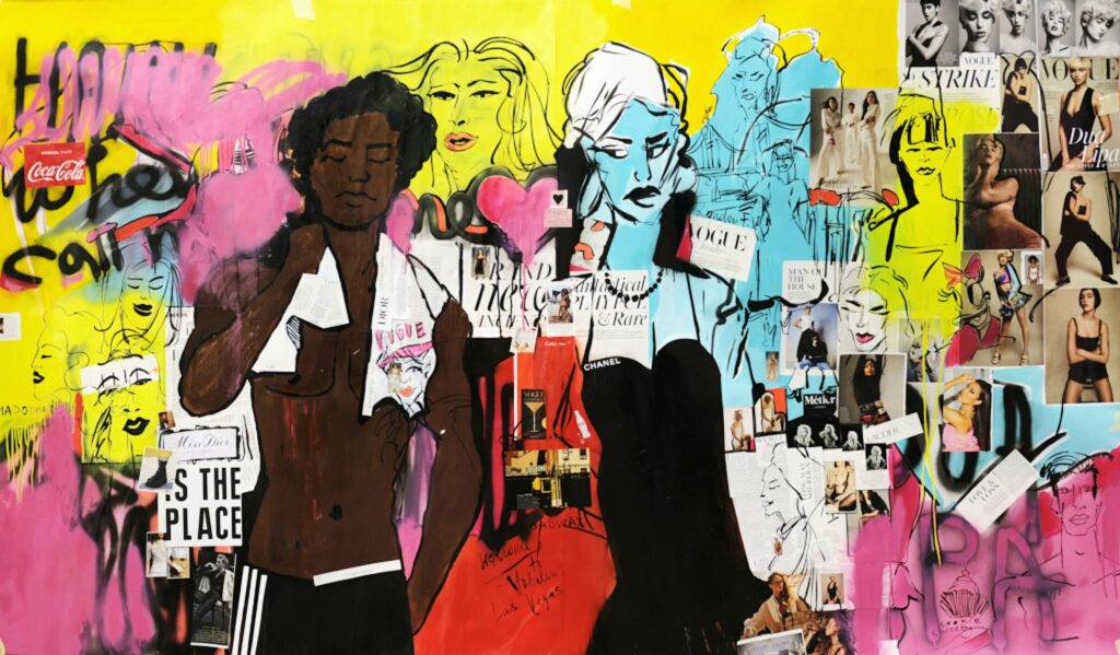 akryl, sprej, płótno