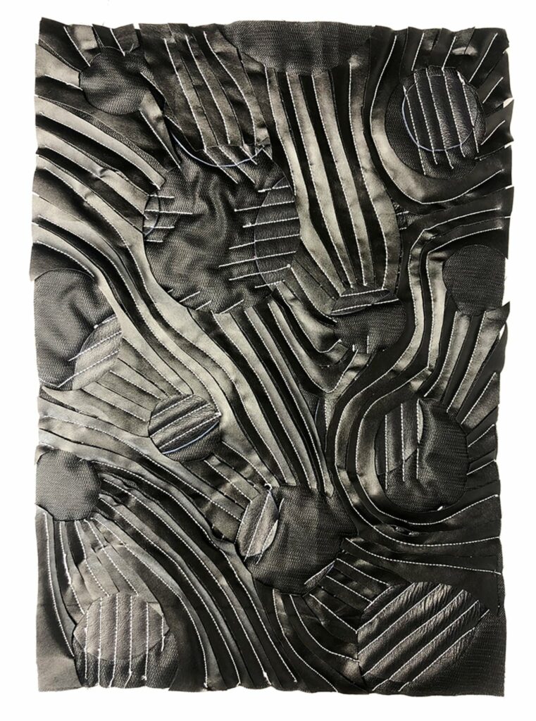 Propozycja kolekcji tkanin odnosząca się do tematu "odkrywcze odsłonięcie". Techniki manipulacji tkaninowej