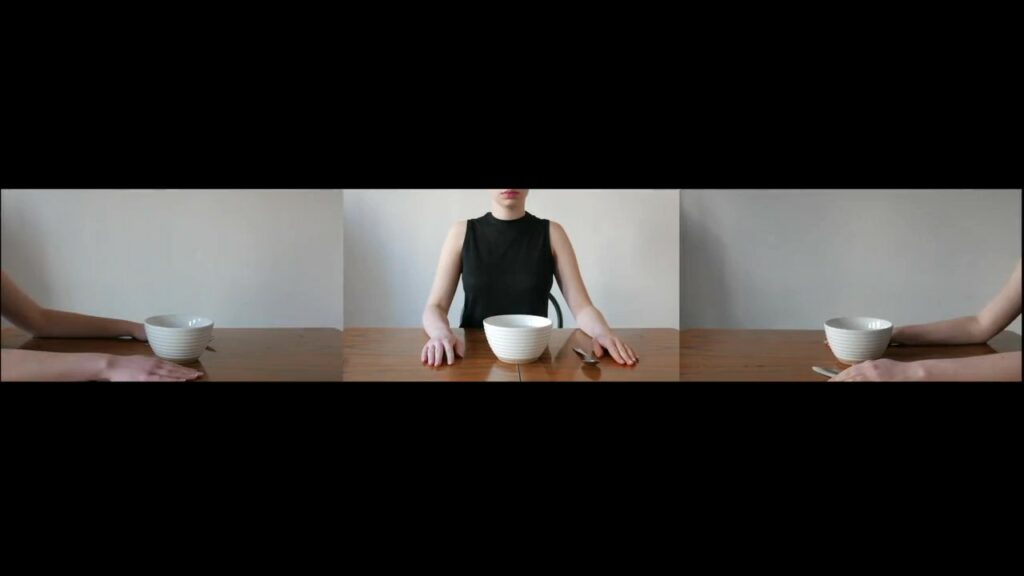 Codzienność to zbiór powtarzających się czynności, pewnej rutyny, która jest częścią samotnego życia. Pory dnia, trudne do oddzielenia, stały się monotonią, bo nie ma zmiennych w postaci miejsca spożywanego posiłku oraz rodzaju naczynia. Postać na każdym wideo zajmuje różne strony stołu, co wraz z upływem czasu, daje wrażenie wspólnego zasiadania przy stole, dzielenia się daniem. Bycie swoim jedynym codziennym towarzyszem jako główna forma interakcji.