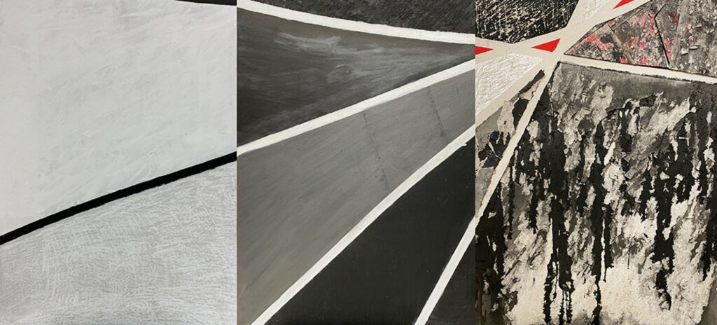 rysunek na tekturze, technika: wegiel, tusz, akryl