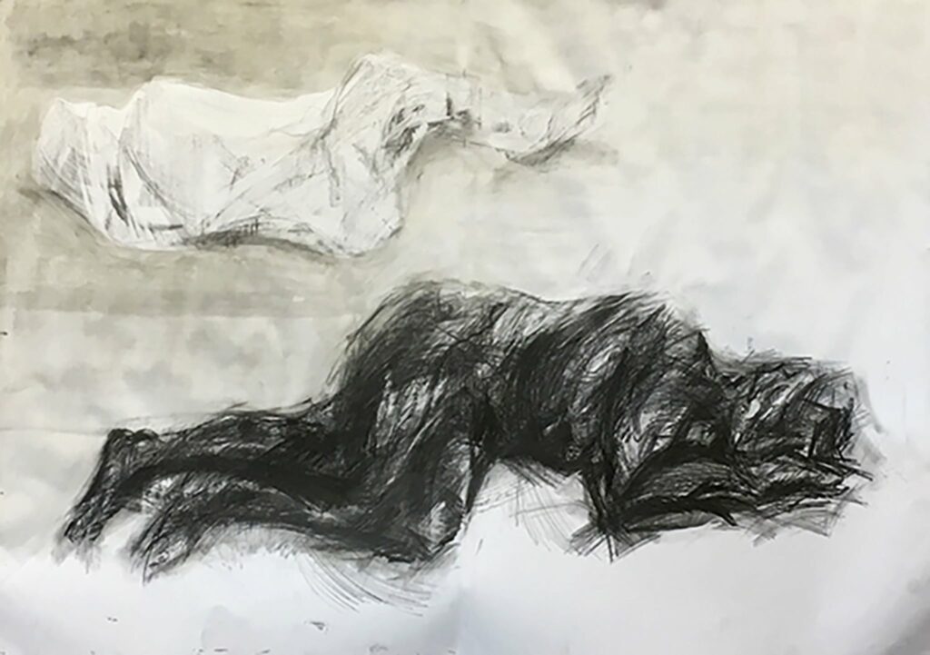 węgiel, ołówek, tusz
