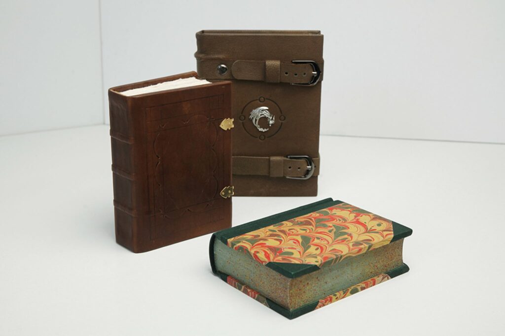 Book binding mock-ups made using various techniques
