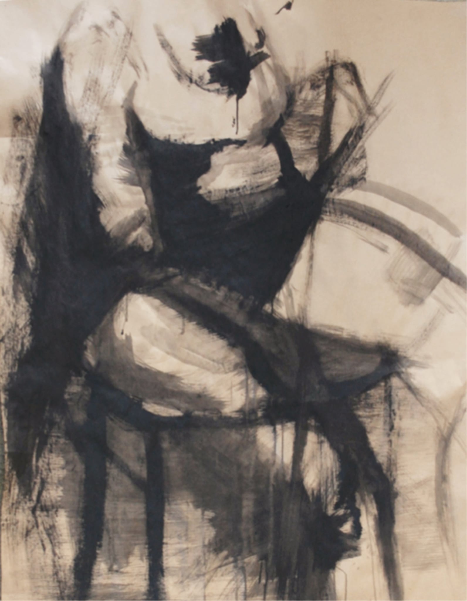 acrylic, carbon on paper