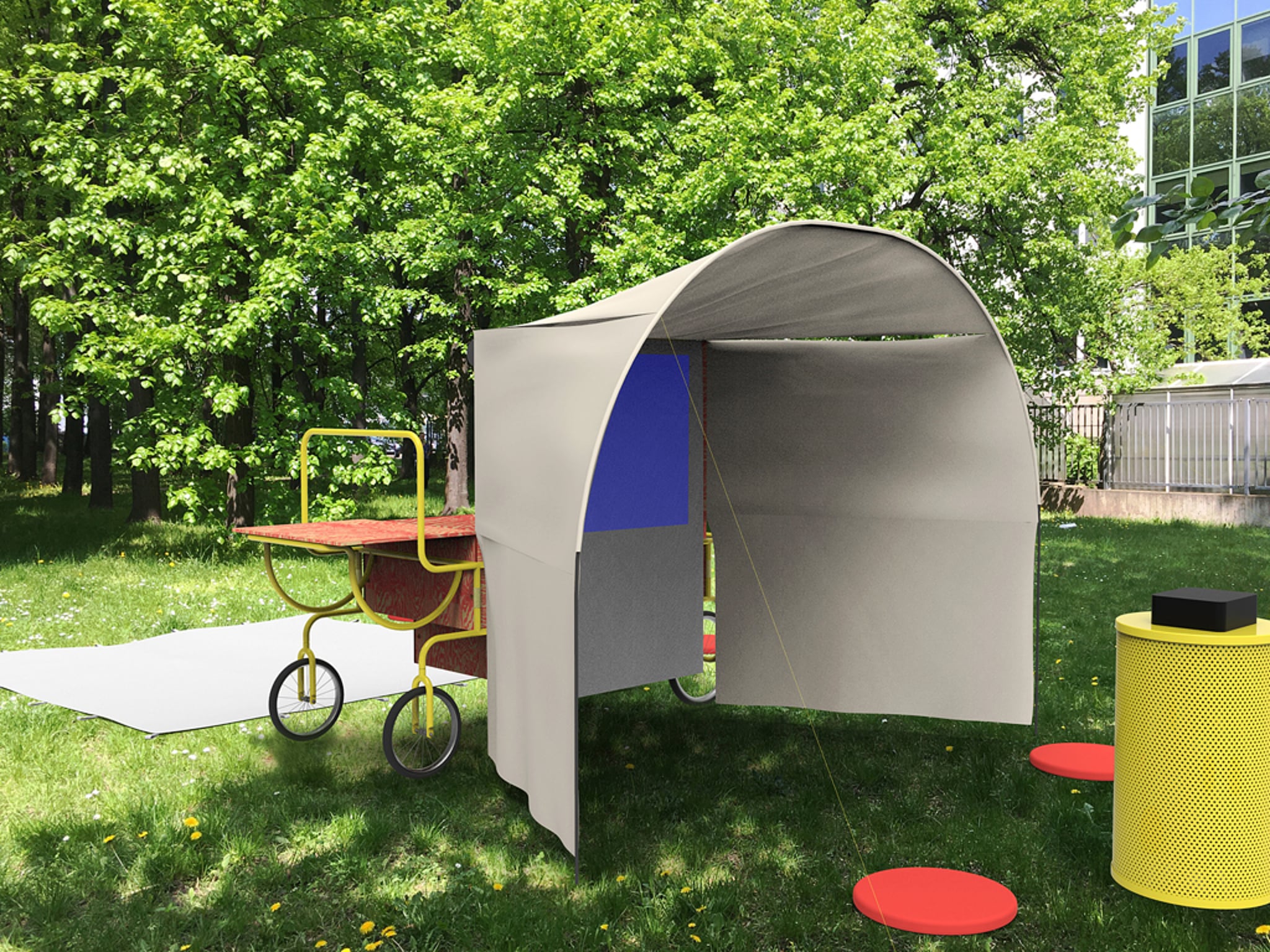 The workshops are addressed to pupils of Warsaw primary schools, and their leitmotif is the city. They are held in the open air near schools, beside the Archimobil mobile point. The object consists of two parts: the projection part and the workshop part. In the first part, visual materials are presented, and the practical part of workshops is held on the other side. When the object is not used for workshops, it is situated in the Warsaw Architecture Pavilion Zodiak. It is also the ultimate destination of the exhibition summarising the workshops.
